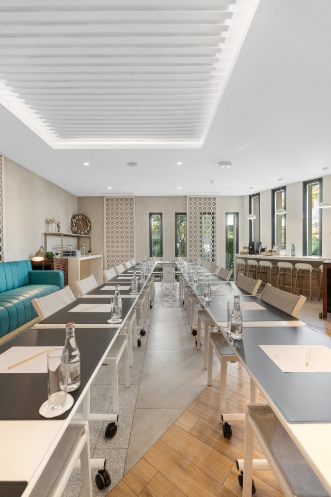 L’un des atouts majeurs de cette offre réside dans l’enchaînement naturel entre un temps de travail structuré et un moment de convivialité, sans rupture ni contrainte logistique. Après une matinée de réunion, les équipes peuvent se retrouver quelques étages plus haut, au restaurant rooftop Le Syracuse, pour un déjeuner d’affaires face à la mer.